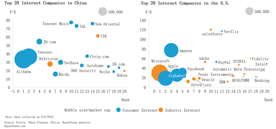 作为中国市值最高的两家巨头腾讯及阿里,两家企业最初还是在互联网和移动互联网时代,其定位也是经历着消费互联网向产业互联网的转变;而美国估值最高的企业中,微软则始终定位B端用户,是产业互联网领域的代表企业。可见,中国和美国的产业互联网企业估值仍存在一些差距。