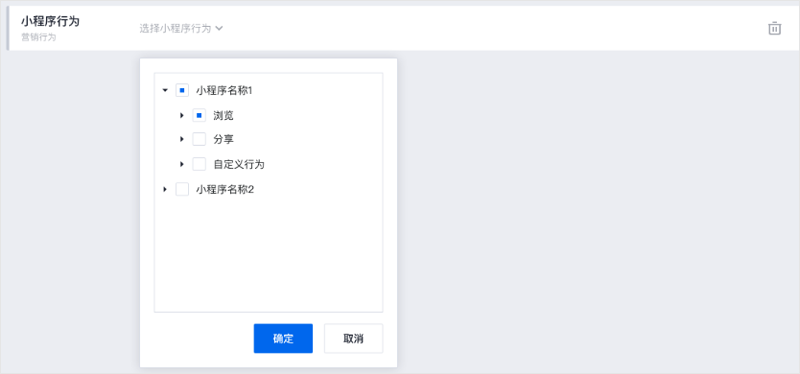 新增小程序行为,支持企业根据自有小程序内的行为来筛选人群包触达人群,支持筛选浏览、分享、滑至底部、自定义埋点行为。